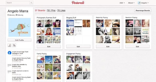 Cliccando sul nostro nome in alto a destra è possibile vedere la nostra bacheca con tutte le diverse categorie, sia quelle che abbiamo deciso di seguire che quelle create da noi stessi. È possibile editare singolarmente le categorie, cambiare l’ordine di posizionamento sulla bacheca e sulla sinistra è presente uno storyboard delle nostre attività.